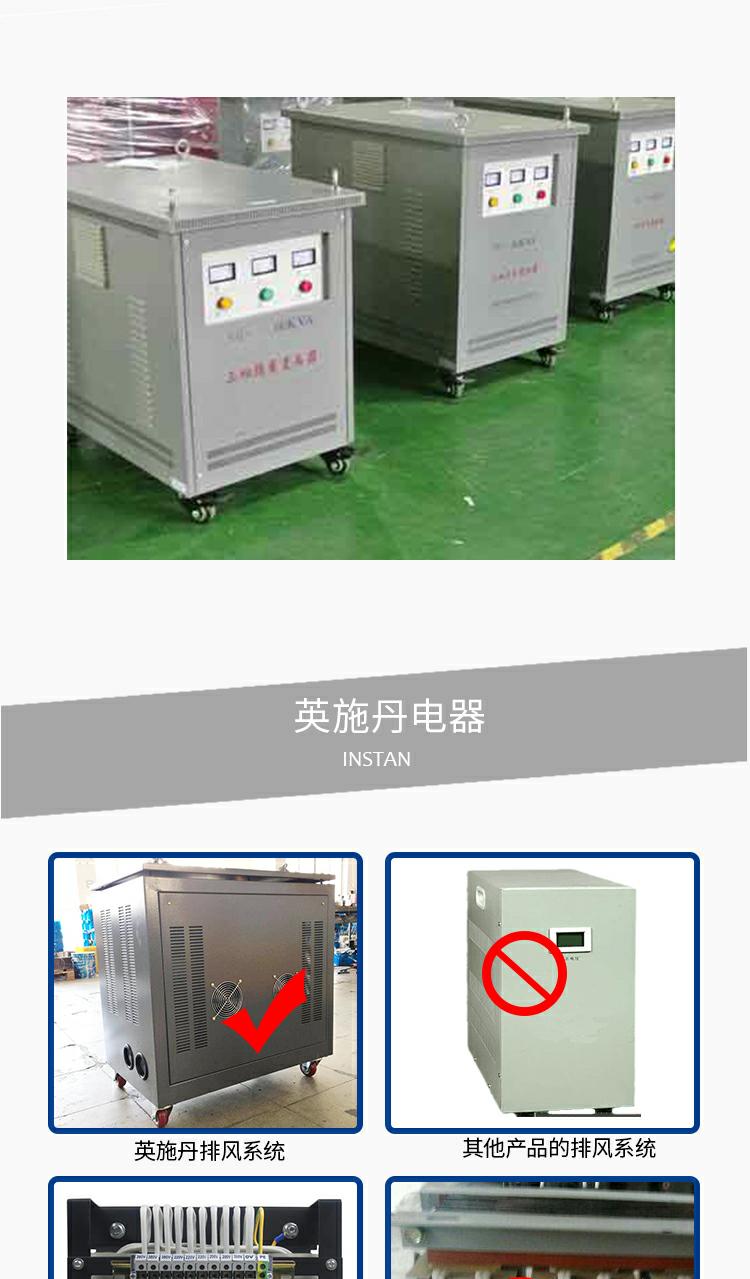 >產品使用范圍: 英施丹隔離變壓器分單相(DG)與三相(SG)系列,主要的作用是將用電設備和電網隔離開.用于安全性場合或者抗干擾(多采用D/Y、D/Yn △/Yo或Yo/ △連接 )要求的場合等,用電設備和電源沒有直接的電聯(lián)系。廣泛用于地鐵、高層建筑、機場、車站、碼頭、工礦企業(yè)及隧道的輸配電及進口、出口設備的使用等場所。 英施丹SG系列三相干式變壓器(380V變壓器)主要用于各種高低壓成套電氣、進出口設備、精密機床、UPS、電鍍、照明、加熱、通信、化工等行業(yè)設備的控制電力、電源之用。