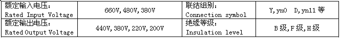結(jié)構(gòu)特征 鐵心采用優(yōu)質(zhì)冷軋硅鋼片精心疊制而成,根據(jù)絕緣等級(jí)的不同,整體浸漬不同絕緣等級(jí)的絕緣漆,能有效降低變壓器噪聲,減少鹽霧,霉菌等對(duì)變壓器的影響。根據(jù)防護(hù)等級(jí)的不同,變壓器箱體由優(yōu)質(zhì)鋼板制成,結(jié)構(gòu)上既充分考慮空氣流通,又能有效地起到防護(hù)作用,變壓器接線電纜也很方便連接,設(shè)計(jì)充滿人性化?筛鶕(jù)用戶要求安裝電壓電流表、電源指示燈、塑殼斷路器等。 訂貨須知 產(chǎn)品型號(hào) 額定容量 額定電壓