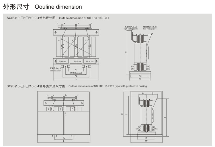 SCB10-100/10,SCB10-125/10 SCB10-160/10,SCB10-200/10,SCB10-250/10,SCB10-315/10,SCB10-400/10,SCB10-500/10 SCB10-630/10,SCB10-800/10,SCB10-1000/10,SCB10-1250/10,SCB10-1600/10 SCB10-2000/10,SCB10-2500/10 SCB10-3000/10SCB10變壓器執(zhí)行標(biāo)準(zhǔn): 1.GB1094.11—2007干式電力變壓器 2.GB/T10228—2008干式電力變壓器技術(shù)參數(shù)和要求 3.GB/T17211—1998干式電力變壓器負(fù)載導(dǎo)則 4.GBl094.10—2003電力變壓器第3部分:絕緣水平、絕緣試驗(yàn)和外絕緣空氣間隙 5.JB/T10008—2004 6、500kV級變壓器聲級 6.JB/T56009—1998干式電力變壓器產(chǎn)品質(zhì)量分等