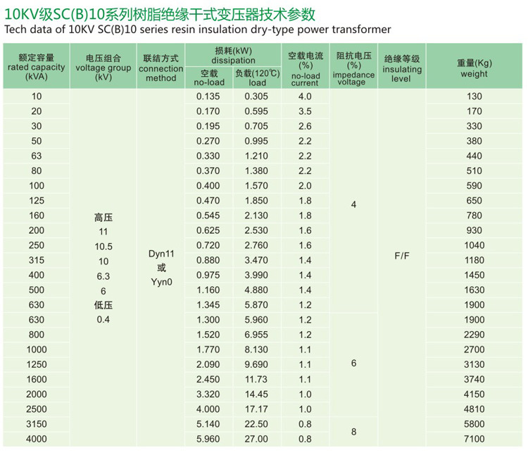 干式變壓器SCB10-250KVA315KVA400KVA500KVA630KVA800KVA1000KVA/KW10KV/0.4V多少錢一臺¥?什么價格?工廠直線:021-51095208熱線:4006855086 SCB10樹質(zhì)絕緣千式變壓器是我公司引進(jìn)國外先進(jìn)技術(shù), 由于線圈被環(huán)氧樹脂包封,所以難燃,防火體積小,可直接安置在負(fù)荷中心。同時科學(xué)合理的設(shè)計和澆注工藝,電小,噪聲低,散熱能力強(qiáng),在強(qiáng)迫風(fēng)冷條件下可以在125%額定負(fù)載下長期運(yùn)行,并配有智能溫控儀,具有故障報警,超溫報警,朝聞挑著,以及黑匣子功能,并通過RS485串口與計算機(jī)相連,可以集中監(jiān)視和控制。  產(chǎn)品結(jié)構(gòu): 高壓繞組 高壓繞組用帶填料環(huán)氧樹脂真空澆注,局放量小,線圈電氣強(qiáng)度高,繞內(nèi)外壁用玻璃纖維網(wǎng)絡(luò)格板增強(qiáng),增加了線圈的機(jī)械強(qiáng)度,提高了產(chǎn)品抗突短路的能力,線圈永不開裂。 低壓繞組 低壓繞組采用箔式結(jié)構(gòu),解決了用線繞時軸向螺旋角問題,使安匝更s同時線圈采用軸向冷卻風(fēng)道,增強(qiáng)了敗熱能力,繞組層間采用了DMD環(huán)氧預(yù)漫布,整體固化成形。 鐵芯 鐵芯造用進(jìn)口優(yōu)質(zhì)冷軋硅鋼片,三階金斜接結(jié)構(gòu)、芯柱果用F級無模禮、鐵芯表面采用環(huán)氧樹醒包封,降低了空載損耗,空載電流和鐵芯城央件和緊固件經(jīng)持殊表面處理,使產(chǎn)品外觀質(zhì)量有了進(jìn)一步提高, 溫控系級和冷風(fēng)系統(tǒng) 采用橫流頂吹式冷卻風(fēng)機(jī),該冷卻風(fēng)機(jī)具有噪聲小,風(fēng)壓高,外形美觀等特點(diǎn),增強(qiáng)了變壓器的過載能來。溫度控制采用智能溫控儀,提高了變壓器運(yùn)行可靠性。 產(chǎn)品特點(diǎn): 1.安全,防火,無污染,可直接運(yùn)行于負(fù)荷中心; 2.采用國內(nèi)先進(jìn)生產(chǎn)技術(shù),機(jī)械強(qiáng)度高,抗短路能力強(qiáng),局部放電量小,熱穩(wěn)定性好,可靠性高,使用壽命長; 3.低損耗,低噪音,節(jié)能效果明顯,免維護(hù); 4.散熱性能好,過負(fù)載能力強(qiáng),強(qiáng)迫風(fēng)冷時可提高50%容量運(yùn)行; 5.防潮性能好,適應(yīng)高濕度和其他惡劣環(huán)境中運(yùn)行; 6.體積小,重量輕,占地空間少,安裝費(fèi)用低。