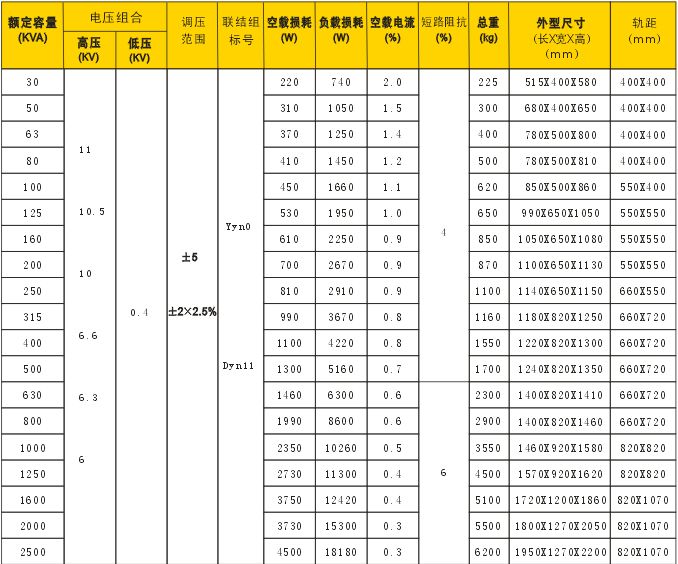 SCB10干式變壓器1250KVA1500KVA1600KVA2000KVA2500KVA3000KVA/KW10KV/0.4V多少錢一臺(tái)什么價(jià)? 概述: SCB10電力干式變壓器是建立新的中線-接地就可解除電網(wǎng)中共模干擾和其它中線的困擾,SCB10電力干式變壓器將三線△接線轉(zhuǎn)換為四線Yo系統(tǒng),加屏蔽就進(jìn)一步免除了由SCB10電力干式變壓器內(nèi)部耦合的高頻脈沖干擾和噪音,雖然有屏蔽的SCB10電力干式變壓器對各種N-G來的干擾(脈沖和高頻噪聲)能有效防止,但SCB10電力干式變壓器必須正確妥善接地,十分嚴(yán)格,否則抗共模干擾將無效果。本公司為客戶設(shè)計(jì)生產(chǎn)高質(zhì)量的SCB10電力干式變壓器。  特性優(yōu)點(diǎn): 高度 N-G性能良好 高度共模干擾抑制 將△轉(zhuǎn)換為Y或Y至△ 電壓抽頭容易轉(zhuǎn)換 按用戶的特殊性能要求設(shè)計(jì) 一、在電源輸入端接入SCB10電力干式變壓器(三角/星形) 1、若電網(wǎng)三次諧波和干擾信號比較嚴(yán)重,采用△/YoSCB10電力干式變壓器,可以去掉三次諧波和減少干擾信號。 2、可以采用△/YoSCB10電力干式變壓器產(chǎn)生新的中性線,使設(shè)備與電網(wǎng)中性線無關(guān),避免由于電網(wǎng)中性線不良造成設(shè)備運(yùn)行不正常。 3、非線性負(fù)載引起的電流波形畸變(如三次諧波)可被而不污染電網(wǎng)。 二、在電源輸出端接入SCB10電力干式變壓器(星形/三角) 1、防止非線性負(fù)載的電流畸變,影響到穩(wěn)壓電源的正常工作及反回到電網(wǎng),起到凈化電網(wǎng)的作用。 2、非線性負(fù)載電流的畸變影響取樣的準(zhǔn)確性,可以在Yo/△SCB10電力干式變壓器輸入端采樣,得到能反應(yīng)實(shí)際情況的控制信號,使穩(wěn)壓電源控制正常。 3、若負(fù)載不平衡,采用Yo/△也不影響穩(wěn)壓電源的正常工作。 技術(shù)要求: 1.標(biāo)準(zhǔn):GB1094-1996、GB6450-1986、GB/T10228-1997、符合DIN42523、IEC726 2.容量范圍:30-3000kVA 3.電壓等級:10kV、35kV 4.調(diào)壓方式:無勵(lì)磁調(diào)壓或有載調(diào)壓 5.分接范圍:±5%、±2×2.5%、±4×2.5% 6.頻率:50Hz或60Hz 7.相數(shù):三相或單相 8.聯(lián)結(jié)組標(biāo)號:Yyn0,Dyn11或其它 9.短路阻抗:標(biāo)準(zhǔn)阻抗(見性能參數(shù)) 10.海拔小于1000m,環(huán)境溫度低于40℃。超過上述使用條件時(shí),應(yīng)按照標(biāo)準(zhǔn)做相應(yīng)的定額調(diào)整 11.更高溫升:100K 12.冷卻方式:自冷(AN)或風(fēng)冷(AF) 13.防護(hù)等級:IP00、IP20、IP23 14絕緣等級:F級 15.絕緣水平: (1)10kV級產(chǎn)品工頻耐壓35kV,雷電沖擊電壓75kV (2)20kV級產(chǎn)品工頻耐壓50kV,雷電沖擊電壓125kV (3)35kV級產(chǎn)品工頻耐壓70kV,雷電沖擊電壓170kV 產(chǎn)品特點(diǎn): 1.高壓繞組采用漆包銅線,低壓繞組用銅箔繞制。高壓繞組用玻璃纖維氈填充,在真空狀態(tài)下用不加填料的進(jìn)口環(huán)氧樹脂澆注,固化后形成堅(jiān)固的整體,機(jī)械強(qiáng)度好,局部放電小,可靠性高。 2.阻燃、防爆、不污染環(huán)境,可安裝在負(fù)荷中心。 3.線圈不吸潮,鐵心、夾件經(jīng)過特殊工藝處理可在相對溫度和其它惡劣環(huán)境中運(yùn)行,間斷運(yùn)行無須去潮處理。 4.抗短路、雷電沖擊水平高。 5.線圈內(nèi)外側(cè)樹脂絕緣層薄,散熱性能好。冷卻方式一般采用空氣自然冷卻(AN)。對于任何防護(hù)等級的SCB10電力干式變壓器都可配置風(fēng)冷系統(tǒng)(AF)。 6.損耗低,節(jié)電效果好,運(yùn)行經(jīng)濟(jì),可免維護(hù)。 7.體積小、重量輕、占地空間小、安裝方便。 技術(shù)參數(shù): GB6540-1985&IEC726干式電力SCB10-315KVA電力干式變壓器 GB/T17211-1998干式電力SCB10-315KVA電力干式變壓器負(fù)載導(dǎo)則 GB/T10228-1997干式電力SCB10-315KVA電力干式變壓器技術(shù)參數(shù)和要求 GB10237-1998電子SCB10-315KVA電力干式變壓器絕緣水平和絕緣試驗(yàn) JB/T10088-2004 6~220kv級SCB10-315KVA電力干式變壓器聲級 JB/T56009-1998干式電力SCB10-315KVA電力干式變壓器產(chǎn)品質(zhì)量分等 GB4208-1993外殼防護(hù)等級
