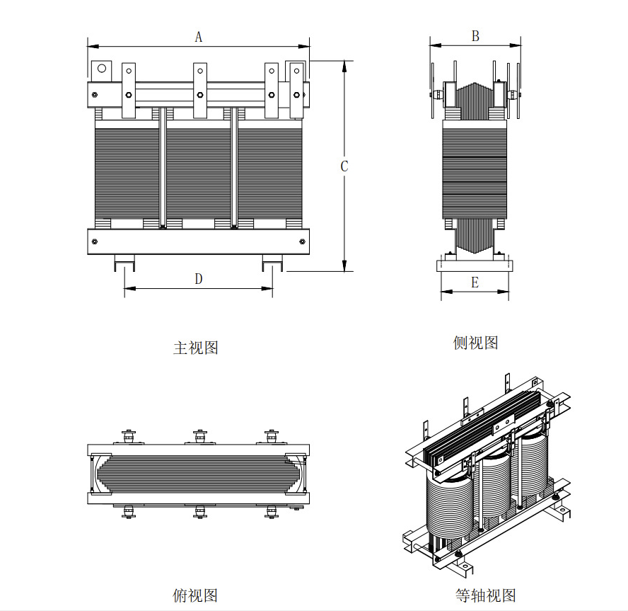 2、采用優(yōu)質(zhì)全新硅鋼片制做,有效減少鐵損,提高效率。