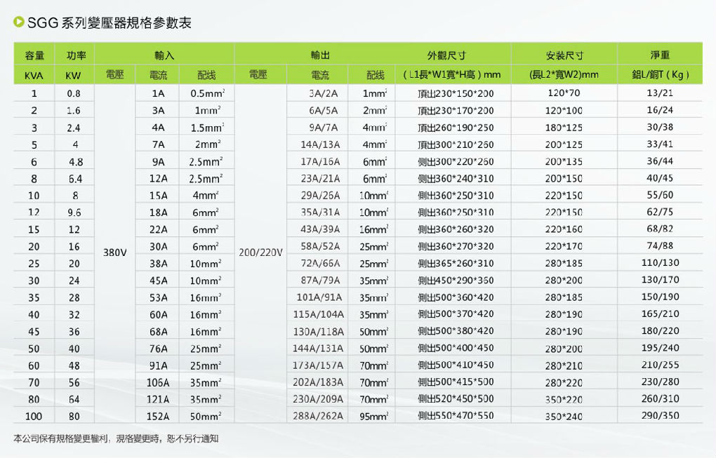 。SG變 壓器廣泛運(yùn)用於各類機(jī)床、加工中心、數(shù)控設(shè)備的系統(tǒng)和主軸電機(jī)的電壓轉(zhuǎn)換及出口設(shè)備動(dòng)力電源之用。目前已經(jīng)成功與發(fā)那科、三菱、西門子、新代、華中、廣數(shù)、安川、寶元等數(shù)控系統(tǒng)合作,長期安全應(yīng)用於發(fā)那科、三菱、西門子、富士、安川、松下、臺達(dá)、凱奇等伺服電機(jī)和主軸電機(jī)。