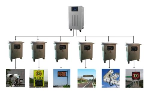外場設備遠程供電系統(tǒng)由電源升壓設備、供電線纜和電源降壓設備組成。主要用于高速公路外場攝像機、車檢器和情報板等外場設備的供電使用。該設備有效解決了以下幾個問題: