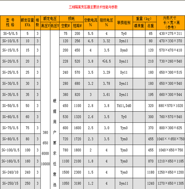 升壓變壓器 SG系列三相升壓變壓器普遍適用于交流50Hz至60Hz,電壓660V以下的電路中,普遍用于重要設(shè)備、精密機(jī)床、機(jī)械電子設(shè)備、整流裝置,照明等。產(chǎn)品的輸入、輸出電壓的高低、聯(lián)接組別、調(diào)節(jié)抽頭的多少及位置(一般為±5%)、繞組容量的分配、次級單相繞組的配備、整流電路的運用、是否要求帶外殼等,均可根據(jù)用戶的要求進(jìn)行精心的設(shè)計與制造,但若長期負(fù)載使用,總功率不得超過額定容量80%。 產(chǎn)品特點 在升壓隔離變壓器建立新的中線-接地就可解除電網(wǎng)中共模干擾和其它中線的困擾,升壓隔離變壓器將三線△接線轉(zhuǎn)換為四線Yo系統(tǒng),加屏蔽就進(jìn)一步免除了由變壓器內(nèi)部耦合的高頻脈沖干擾和噪音,雖然有屏蔽的隔離變壓器對各種N-G來的干擾(脈沖和高頻噪聲)能有效防止,但變壓器須正確妥善接地,十分嚴(yán)格,否則抗共模干擾將無效果。本公司可以為客戶設(shè)計生產(chǎn)高質(zhì)量的隔離變壓器。 產(chǎn)品特性 Ø高度隔離 Ø N-G性能良好 Ø高度共模干擾抑制 Ø將△轉(zhuǎn)換為Y或Y至△ Ø電壓抽頭容易轉(zhuǎn)換 Ø按用戶的特殊性能要求設(shè)計 技術(shù)指標(biāo) 輸入額定電壓:三相380V或單相380V或單相220V 工作頻率:50Hz-60Hz 效 率:≥95% 溫 升:<60< p=""> 波形畸變:<0.1%< p=""> 高壓測試:2500V,1分鐘無擊穿 使用條件 適用海拔高度:≤5000m 環(huán)境溫度:-15℃~+45℃ 相對濕度:≤90% 安裝場所應(yīng)無嚴(yán)重影響變壓器絕緣強(qiáng)度的氣體,蒸汽,化學(xué)性沉積,污垢,導(dǎo)電塵埃及無其他易爆易燃易腐蝕的物質(zhì)。(凡不符合上述使用條件的,應(yīng)與我司協(xié)商確定。 ) SG,DG,OSG,ODG(三相,單相,自耦)YSD干式升壓變壓器是我公司為適應(yīng)各國不同電網(wǎng)制式和有特殊要求的設(shè)備設(shè)計生產(chǎn)的系列產(chǎn)品,具有適用范圍普遍,能承受瞬時的超載,可長期連續(xù)工作的特點。 一、概述: 本產(chǎn)品是我廠針對工礦企業(yè)配套而設(shè)計,適合于電源隔離輸配電等場合。 二、產(chǎn)品用途: 適用于定額頻率為50-60HZ的輸配電之用。 三、結(jié)構(gòu)特征: 本型產(chǎn)品線圈為圓筒式,鐵芯采用迭積式心式鐵芯,高、低壓線頭引至固定的接線極或接線導(dǎo)電排,絕緣等級分為B級、F級、H級。一般用罩殼屏蔽,以策安全。