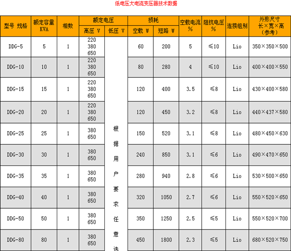 一、概述: 無論試驗、加熱,均需從電源電壓降壓以升流,使低壓電流達(dá)數(shù)千或萬余安培。本系列產(chǎn)品的高壓電壓一般為220伏、380伏和650伏,其低壓電壓由升流大小而不同,自成一個系列,供工礦企業(yè)采用。在采用本系列產(chǎn)品時,一般需要在電源前側(cè)加電壓調(diào)節(jié),使低壓側(cè)達(dá)到無級調(diào)節(jié)。 二、產(chǎn)品用途: 本系列適合于額定頻率為50HZ的開關(guān)、電流互感器、金剛石行業(yè)等電器設(shè)備的連續(xù)負(fù)載實驗及加熱作升流之用。